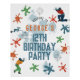 This cool and modern paintball-themed kids birthday party welcome sign features a blue paintball cartoon design, with paintballers, paint splatters, target signs, and text. The sign can be personalised with your boys name and age. The perfect colourful addition to your child's party, perfect for a 12th birthday.