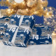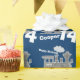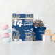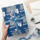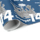 Birthday wrapping paper in blue and grey. Personalise this boys birthday paper with your name and age. Currently reads Happy birthday Cooper 14. Great for wrapping a special tenth birthday present. Uniquely designed by Sarah Trett.