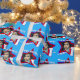Birthday wrapping paper in a blue and red star pattern which you can add your own photograph in the star. Personalise this boys star first birthday paper with your own photo, name. Currently reads Happy Birthday Jayden 1 today. Lets face kids of one prefer the paper anyway so why not make it more fun for them to look at and celebrate a 1st birthday in style. Uniquely designed by Sarah Trett.