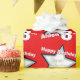 Birthday boys wrapping paper in bright red, black, grey and white add your own photograph design. Personalise this boys star birthday paper with your own photo, name and age. Currently reads Happy Birthday Aiden 3 today. Uniquely designed by Sarah Trett.