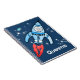 Personalise this blast off space rocket boys blue notebook / journal with your own choice of name and photo in the port hole, currently reads Quentin. Original illustration and design by Sarah Trett.