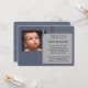 Elegant navy blue photo christening invitation. This cute boy's navy blue and grey christening invitation is easily customised for your event by simply adding your photo and event details, font style, font size & colour, and wording.