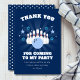 Boy's Navy Blue Bowling Birthday Party Thank You Card