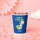 Awesome kids swimming pool Happy Birthday party paper cup for a blonde child on the swim team during the summer. Features a bright, fun pop of colours and a cool swimming boy in an inner tube. Customise for a special children's gift.