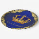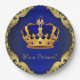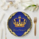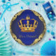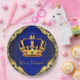 Prince baby shower paper plates with fancy royal blue and gold crown and blue it's a prince banner on a rich blue and gold swirl background. You can customise with the text of your choice in the font style you prefer. You can move the crown as needed.