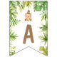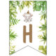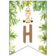 Cute safari themed birthday happy birthday bunting flag banner featuring seven watercolor jungle animals, leopard or cheetah print pattern text and some foliage. Ideal for a two wild themed second birthday party for a boy.