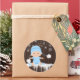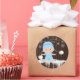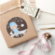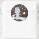 Boys snowflake baby shower stickers with adorable baby boy wearing a cute baby blue snow outfit and hat on a rustic snowflake background. You can add text to personalise these cute winter baby shower stickers.