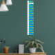 Growth chart for little boys with clown fish design and name at the top. This long, 44 inch wall chart has a white panel along one edge where ruler measurements can be added, depending on where you put it on the wall. Or simple add the date and measurement at the time of measuring. Sea blue colour with allover pattern of orange, green and blue fish.