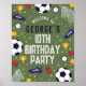 This cool and modern soccer-themed kids’ birthday welcome sign features a vibrant green design with playful illustrations of a football (soccer ball), trophies, stars, goals, and soccer boots. Easily personalize the poster or printable with your child’s name, age, and party details—perfect for welcoming guests to any football-themed birthday celebration.