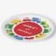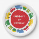 Boys' Toys Colourful Fun And Cute Transportation, Red Cars, Yellow Buses, Blue Trucks And Green Trains In A Circle, Kids / Children Birthday Party Paper Plates With Customisable Name.