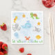 Under the sea birthday paper napkins for a baby boy featuring various sea creatures or critters and seaweed. This boy's under the sea birthday napkin is ideal for a little boys under the sea themed birthday party.