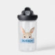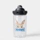 This adorable Easter water bottle features a watercolor bunny holding a blue polka dot banner. Personalise with your child's name.