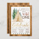 Wild one first birthday party invitation with teepee and trees on a rustic wood background. This cute rustic wild one first birthday invitation is easily customised for your event by simply adding your details. This is a printed design with no real glitter, foil, etc.