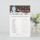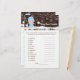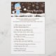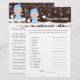 Boys baby shower games with baby word scramble on one side, and nursery rhyme quiz on the other. This rustic snowflake with cute baby boy wearing a light blue snow outfit and hat baby shower game flyer is easily customised for your event. You can change the questions and the words. Hand them out to your guests telling them not to look, then start the clock. When time is up read the answers and the person with the most right wins a prize. You can even add the words and rhymes of your choice!