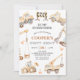 Cute construction themed or dirty 3rd-y birthday invitation for a boy featuring various construction vehicles and some outline text.
