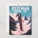 Bozeman Montana ski poster in a detailed and beautiful vintage style, featuring an illustrated backdrop of the beautiful landscape.