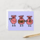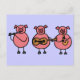 Cute funny musical cartoon pigs postcard design. One little piggy is playing the flute, another is playing the guitar, and the third is playing the saxophone. Can also add custom text when ordering.