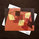 A fine art postcard with the painting by Paul Klee (1879-1940) titled, Braced Surfaces (1930). A three-dimensional abstract painting of squares in browns and yellows. Klee was Swiss-born German expressionist artist, who explored and studied colour theory.