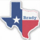 Brady Texas sticker with vintage look TX flag design and state shape in durable, weatherproof finish.