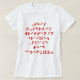 Red braille characters say: "This t-shirt is written in braille. Please read carefully." Keep them guessing! (Unless they actually read it.)