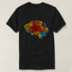 I give wanted to give this a 4 instead of a 5 because these Basic DARK T0shirts run unexpectedly SLIM or Narrow. Which is great if you do not have a potbelly, but I have a paunch. It isn't the shirt's fault that I've got a beer belly. The design and shirt itself is a quality cotton shirt. The color is more of a deep purple, but still a very pretty color. The Basic DARK T-shirts run a bit SLIMMER than the Basic Ts. The neck is a fraction narrower (or seems to be narrower) also. I'm a paunchy middle-aged woman and my neck is 12 inches (31cm) thick and the neckline fell about the same as in the photo of the man, and I had the desire to tug it a bit. So if you're a thick necked man or like loose shirts, be aware these are slimmer shirts. Once I get rid of my lockdown paunch it'll look great. The shirt washed well in cold water with no apparent bleeding. We don't have a dryer, so it hung dry. Did not shrink. Love the colors and the design. The design looks smaller on my shirt than it does on the model on-line. But still, it looks good on the shirt. The printing looks as it does on the model, just the size seems fractionally smaller. Washed garment in cold water, hung dry and design appeared unaffected.