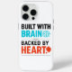 Protect your phone with a message that matters. This “Built With Brain. Backed By Heart.” iPhone case celebrates the perfect blend of logic and emotion. A clean brain icon and pixel-style heart speak to the coder, the dreamer, and the doer in you.