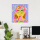 Have you ever had the feeling, as you open your mouth to say words, that your brain suddenly turns into goo, and your words don’t come out right? This art captures that feeling of Brain Melt. As a girl looks up at the ideas in her brain, she opens her lips to talk, but her brain melts into a puddle of swirling psychedelic colours, dripping through her eyes, spouting out her ears, and gushing out of her mouth in goopy drips of pink and green. Above her head float the words “Brain Melt” in squiggly white letters. Beside her shoulder is the signature of the artist, MLO. Original art print.