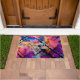 A brightly-coloured (orange, blue, pink,yellow, black), highly abstract fractal image. Add your own text.
