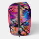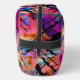 A brightly-coloured (orange, blue, pink,yellow, black), highly abstract fractal image. Customise by adding your own text.