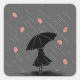 Brainstorm pun with the silhouette of a girl walking with an umbrella during a storm-- with brains.