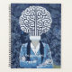 This blue-dominant notebook holds an illustration of a person with a head made entirely of a brain. This is a lovely design to gift to the genius at the house or school! You can customise the default text "the genuine genius".