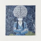 This blue-dominant tapestry design holds an illustration of a person with a head made entirely of a brain. This is a lovely design to gift to the genius at the house or school!