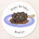 Braised lamb shank cartoon illustration Round Paper Coaster