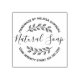 Natural soap stamp with circular lettering and hand-drawn leaves wreath. Please note, you may need to adjust the information you enter by adding or deleting some characters or spaces, to make the text properly aligned.