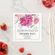 Branches with pink rose flowers and typography wedding paper napkin. This sophisticated wedding paper napkin features a beautifully designed branch embellished with soft pink rose flowers and sage green foliage. The names of the couple are elegantly presented in decorative typography, adding a personal touch to the design. Additionally, a heartfelt 'Thank You' message is included. The whole design is surrounded by a delicate thin border that enhances the overall aesthetic.