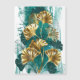 Branch with jewellery, gold and green leaves of Ginko biloba on light, painted green background. Ginko biloba