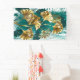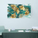 Branch with jewellery, gold and green leaves of Ginko biloba on light, painted green background. Ginko biloba