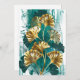 Branch with jewellery, gold and green leaves of Ginko biloba on light, painted green background. Ginko biloba