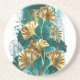 Branch with jewellery, gold and green leaves of Ginko biloba on light, painted green background. Ginko biloba