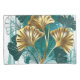 Branch with jewellery, gold and green leaves of Ginko biloba on light, painted green background. Ginko biloba