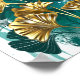 Branch with jewelry, gold and green leaves of Ginko biloba on light, painted green background. Ginko biloba