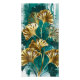 Branch with jewellery, gold and green leaves of Ginko biloba on light, painted green background. Ginko biloba
