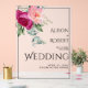 This beautiful acrylic wedding welcome sign features a frosted translucent design with a eucalyptus branch and lovely pink rose flowers. The elegant layout highlights pink and sage green roses in the upper left corner, creating a serene and inviting atmosphere. The stylish typography enhances the overall look, and a subtle black border frames the sign, adding a touch of sophistication to this warm greeting.