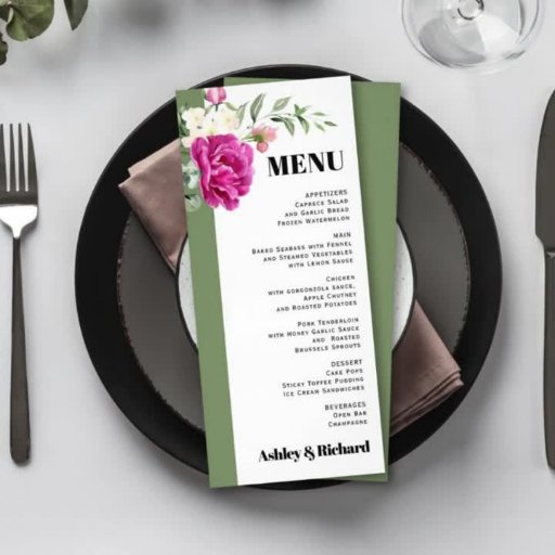 Branch with pink rose and white flowers sage wedding BUDGET wedding ceremony and party program. This elegant wedding program card features a delicate white frame, adorned with a branch with hot pink roses and white flowers. The frame is bordered on the left by a calming sage green, providing a subtle contrast. The couple's names are prominently displayed in a bold typeface, along with the words 'THE CEREMONY' and 'PARTY'. The back of the card is a solid sage green, offering a clean and sophisticated finish. The overall design reflects a budget-conscious yet beautiful aesthetic, perfect for a cherished wedding celebration.
