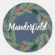 Christmas holiday stickers with our branches and berries design on a dark blue background. You can easily customise these name stickers with your last name before ordering with fancy white cursive text!