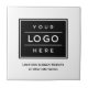 A clean white ceramic tile designed for businesses to brand with their own custom logo, business name, location, slogan, and website. The minimalist white background with a framed logo placement creates a polished decorative accent for offices, reception areas, storefronts, or branded gift sets. All text fields, the uploaded logo, and background colours are fully customisable to match your company branding.