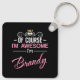 Of Course I'm Awesome I'm Brandy name in mixed casual white and decorative pink cursive font lettering with scroll embellishments and topped with a golden crown.
