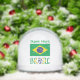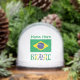Personalised snow globe features a Brazilian flag and the Portuguese spelling, BRASIL, below in the flag colours. Above, in green letters is a place for a name. Cool holiday gift or fun stocking stuffer.