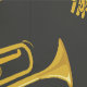 Crazy wallpaper patterned with brass band trumpets and stars. The background colour is a gentle grey, however, you can customise and change this yourself.