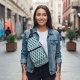 Super cute! Exactly as shown on the site. The pockets and storage are great. Perfect size for on the go. Exactly as expected. The personalized initial is adorable and the denim look pattern is chic and fun.